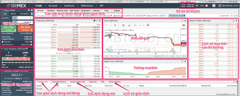 Hướng dẫn làm quen giao diện Bitmex