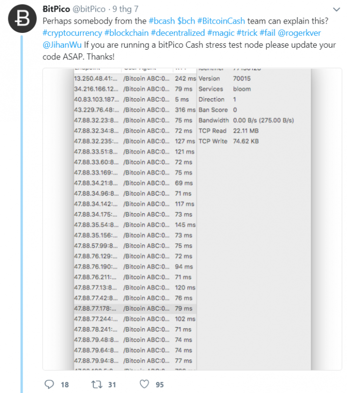 Nhiều tuần trôi qua sau thông báo Bitcoin Cash có thể bị tấn công, nhóm hacker Bitpico đã để lộ ra việc đồng tiền này bị tập trung một lượng rất lớn các node trong network của nó.