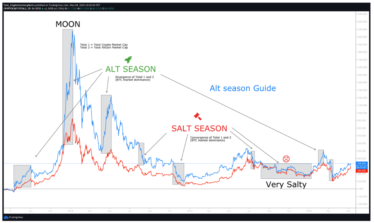 Altcoin season diễn ra khi dòng tiền chuyển từ Bitcoin đổ vào các altcoin, dẫn đến giá trị của chúng tăng mạnh. Một trong những dấu hiệu đặc trưng của mùa altcoin là tỷ lệ phần trăm vốn hóa thị trường của Bitcoin (Bitcoin Dominance) giảm xuống dưới ngưỡng 50%.