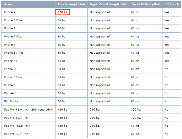 Trên thực tế màn hình của iPhone X có tần số quét 120 Hz không 'xịn' bằng dòng iPad Pro 2017. Có nghĩa là máy vẫn thuộc dạng tiêu chuẩn với tần số quét 60 Hz (Touch Delivery Rate) tuy nhiên tần số quét tương tác màn hình (Touch Sample Rate) đã được đẩy lên 120 Hz nhờ ProMotion.