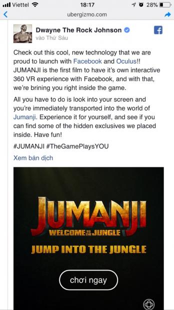 Jumanji được xây dựng bằng bộ công cụ React VR dựa trên WebVR mà Facebook đã phát hành vào tháng Tư. Nó hoạt động trong video 360 độ cũng như với kính thực tế ảo.