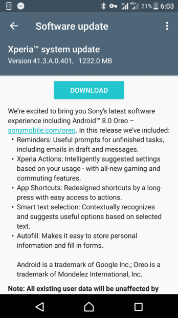 Theo nguồn tin GsmArena, bên cạnh Xperia XA1 Plus, Sony cũng vừa mới tung ra bản cập nhật Android 8.0 Oreo cho Xperia XA1 và XA1 Ultra. Khá bất ngờ, dẫu phiên bản Android 8.0 Oreo nâng cấp toàn diện so với Android 7.0 Nougat nhưng dung lượng chưa