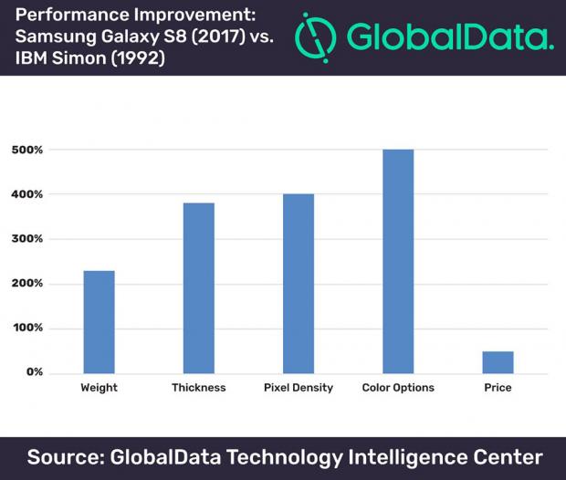 Dữ liệu và phân tích công ty GlobalData đã đưa ra một thông tin đồ họa mới, so sánh một thiết bị thông minh phát hành vào năm 1992 với Samsung Galaxy S8.