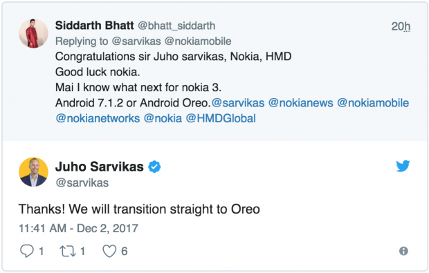 Nếu bạn nào đang xài Nokia 3 đang thắc mắc tại sao tháng 11 đã trôi qua mà vẫn chưa có bản 7.1.2 thì đây là một thông tin đáng quan tâm. Một đại diện từ phía HMD đã xác nhận Nokia 3 sẽ lên thằng Android O từ phiên bản 7.1.1 hiện tại trên trang Twitter chính thức cũa hãng.