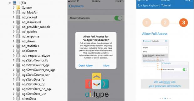Khi các nhà nghiên cứu thử nghiệm cài đặt Ai.Type và kết quả đã khiến họ khá bất ngờ, rằng người dùng phải cho phép 'Full Access' tất cả dữ liệu của họ được lưu trữ trên iPhone thử nghiệm, bao gồm tất cả dữ liệu bàn phím trong quá khứ và hiện tại. Cơ sở dữ liệu bị rò rỉ cũng cho thấy ứng dụng bàn phím ảo trên cũng đánh cắp danh bạ liên hệ của người dùng, bao gồm tên và số điện thoại của những người liên lạc (hơn 373 triệu bản ghi được phát hiện). Các nhà nghiên cứu tiếp tục đặt câu hỏi rằng 'tại sao lại muốn gõ bàn phím và biểu tượng cảm xúc thì phải cần thu thập toàn bộ dữ liệu của điện thoại hoặc máy tính bảng của người dùng?'
