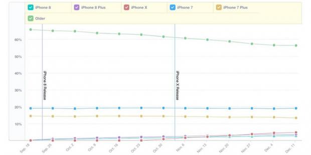 Theo tin từ 9to5mac, dữ liệu cung cấp bởi Mixpanel cho thấy doanh số iPhone X đã vượt qua iPhone 8 lẫn iPhone 8 Plus, nhưng vẫn chưa bằng tổng số của cả 2 gộp lại.