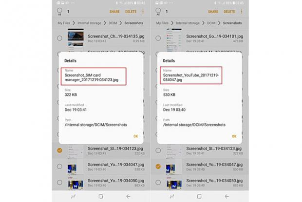 Ngoài tính năng nói trên, Samsung đã thực hiện một số bổ sung hữu ích trong Android Oreo. Gần đây, họ đã cải thiện cách đặt tên ảnh chụp màn hình cho Galaxy S8 khi các tập tin sẽ mặc định bao gồm tên ứng dụng nằm bên trong thông tin bức ảnh.