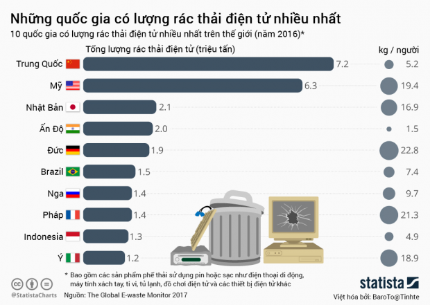 Mời các bạn theo dõi infographic top 10 quốc gia có lượng rác thải điện tử nhiều nhất trên thế giới!