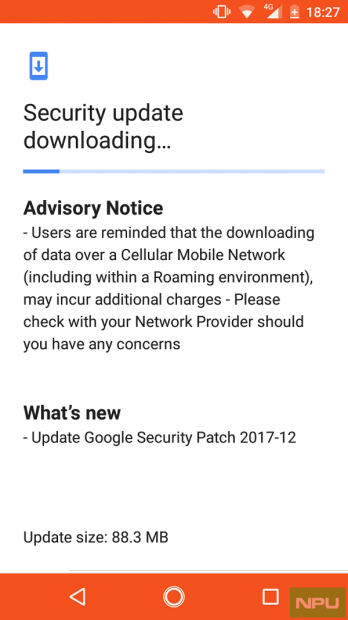 Như bạn có thể thấy trong hình ảnh chụp màn hình, bản cập nhật bảo mật Android tháng 12 dành cho Nokia 2 có kích thước 88.3 MB. Bạn sẽ được nhắc tải bản cập nhật này hoặc kiểm tra trong phần Cài đặt, Cập nhật phần mềm.