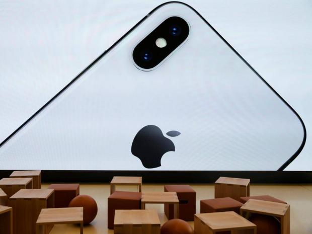 Hình ảnh iPhone X chiếu trên màn hình Trung tâm Khách hàng của Apple ở Cupertino, California (Nguồn: Reuters).