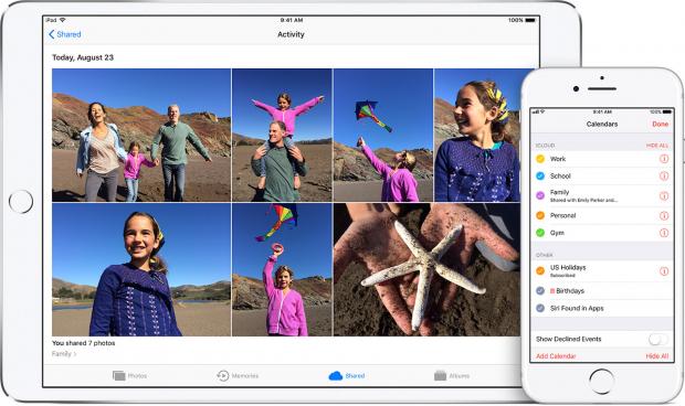Chia sẻ hình ảnh: Bằng cách đặt một tấm ảnh vào mục Shared Album (Chọn vào menu share trong mục chia sẻ) thì những hình ảnh đó cũng sẽ xuất hiện trên mục Shared Album của những thành viên khác. Mọi người đều có thể thêm hình ảnh, videos, và ý kiến vào bất cứ khi nào họ muốn. Sẽ có thông báo hiện lên khi có một thay đổi mới được thêm vào.