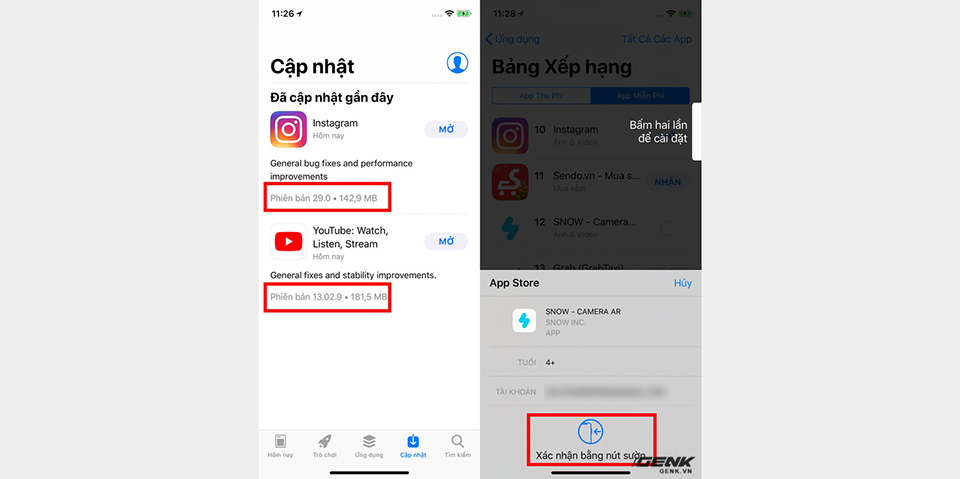 Trên iPhone X, khi người dùng mua ứng dụng mới thì dòng chữ “Xác nhận bằng nút sườn” hiện ra như chỉ dẫn người dùng xác thực thanh toán qua Face ID.