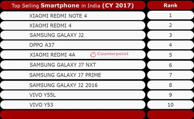 Theo Counterpoint, trong quý 4/2017, tổng doanh số điện thoại ở Ấn Độ tăng 37%. Trong đó, mảng smartphone chiếm 12% với Xiaomi là nhà sản xuất dẫn đầu khi nắm giữa 25% thị phần.