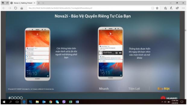 Ngoài ra, người dùng sẽ có thêm hai lựa chọn để mở khóa máy: Mở khóa trực tiếp hoặc Trượt để mở khóa. Nếu chọn Trượt để mở khóa, người dùng đã có thể sử dụng màn hình thông báo thông minh được tích hợp sẵn. Với tính năng này, nếu xác định đây không phải là khuôn mặt chủ sở hữu, Huawei Nova 2i sẽ tự động ẩn tất cả thông báo trên màn hình, như SMS, WeChat, Whatsapp, Line,.v.v. Nhờ vậy, sự riêng tư của người dùng sẽ được bảo đảm.