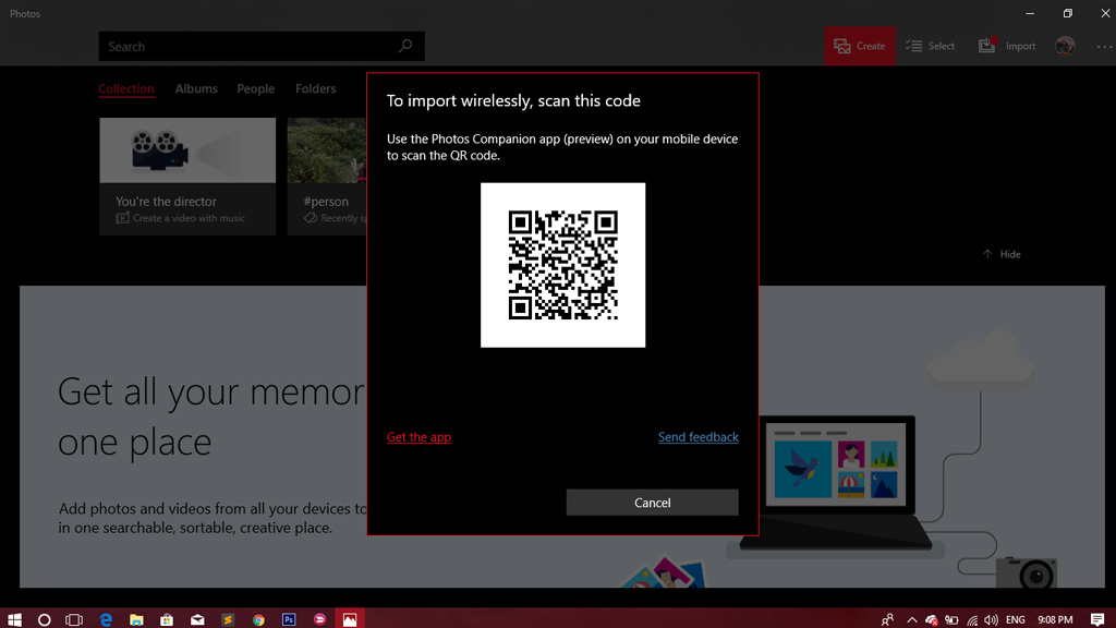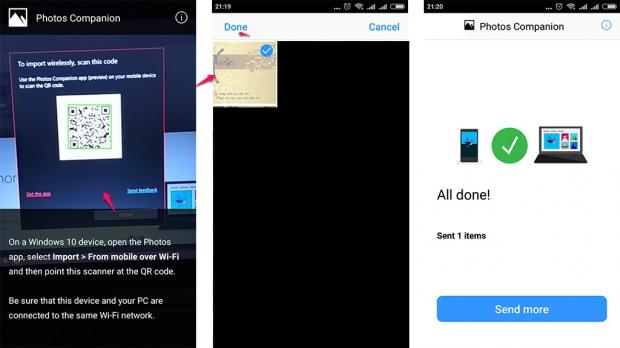 Photos Companion, sau đó đưa điện thoại đến mã QR và tiến hành quét. Chọn ảnh để gửi đến PC, sau đó mở ứng dụng