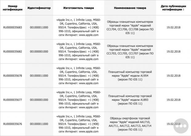 Hai mẫu iPad mới được phát hiện có mã hiệu là A1954 và A1893. Phần mô tả cho biết đây là 2 mẫu máy tính bảng của Apple chạy hệ điều hành iOS 11. Điều này cho thấy iPad mới trong năm nay sẽ được ra mắt sớm.