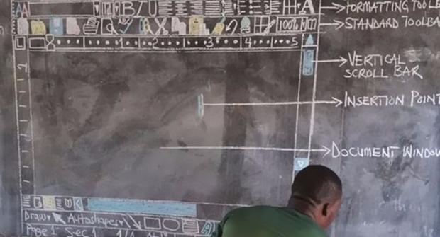 Thiếu cơ sở vật chất, thầy giáo nghĩ ra cách vẽ cả giao diện của MS Word lên bảng đen để dạy họcĐược biết thì ngôi trường nơi mà Owura Kwadwo làm việc đã thiếu thốn cơ sở vật chất từ rất lâu rồi, tính từ thời điểm 2011 thì trường vẫn chưa có máy tính dù trong chương trình học của các học viên thì cần phải vượt qua được những bài kiểm tra liên quan đến máy tính. Và khi hoàn cảnh của trường được bà Rebecca Enonchong, một doanh nhân khá có tiếng tăm, ngỏ lời với Microsoft thì đã nhanh chóng nhận được lời phản hồi từ công ty này với lời hứa rằng sẽ hỗ trợ Kwadwo với các trang thiết bị giúp cho việc dạy học của anh có hiệu quả hơn.