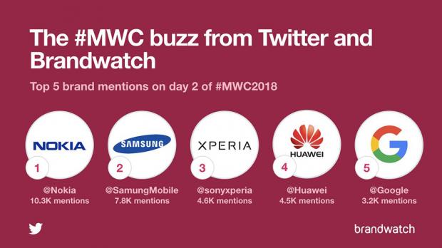 Qua đó Nokia chiếm ngôi đầu bảng và trở thành thương hiệu được nhắc đến nhiều nhất tại MWC 2018, xếp sau lần lượt là Samsung (2), Huawei (3), Google (4) và Apple (5). Giám đốc sản xuất của HMD ông Juho Sarvikas còn cho biết thêm, năm nay công ty đã dành được tổng cộng 21 giải thưởng (phá luôn kỷ lục tại MWC 2017 với 17 giải).