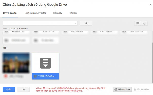 Bên cạnh đó, Gmail còn đặc biệt cho phép người dùng đính kèm một tập tin có dung lượng lớn hơn 25MB thông qua dịch vụ Google Drive của hãng. Bạn đọc có thể tham khảo cách làm dưới đây: