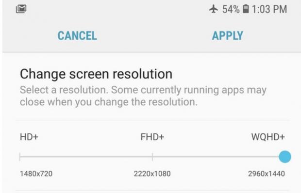 Galaxy S9 là một trong những smartphone được trang bị màn hình sắc nét và đẹp nhất, vậy tại sao bạn không thử tăng độ phân giải màn giải lên đến mức đối đa để có thể ngắn trọn vẻ đẹp này của máy nhỉ. Thông thường để tiết kiệm pin, nhà sản xuất sẽ mặc định độ phân giải màn hình là 1080p, nhưng bạn hoàn toàn có thể nâng cấp lên 1440p bằng cách vào settings > Display > Screen resolution và kéo thanh độ phân giải từ FHD+ lên WQHD+, như vậy là bạn có thể chiêm ngưỡng được màn hình tuyệt đẹp của Samsung rồi.
