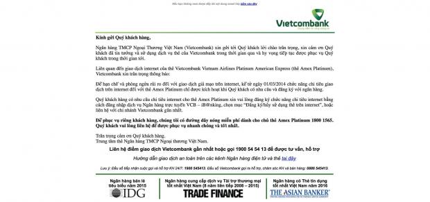 Hiện tại, giao diện trên Website của Vietcombank đã được khắc phục