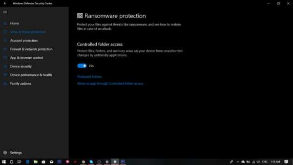 Bạn có thể thấy một tùy chọn mới mang tên Ransomware protection, thật ra đây là một liên kết cho phép bạn mở trang cấu hình tính năng Controlled folder access. Như cái tên của mình, tính năng này cho phép người dùng kiểm soát quyền truy cập một số thư mục nhất định. Như vậy virus hay ransomeware sẽ không thể truy cập những thư mục mà bạn đã thêm vào Controlled folder access.