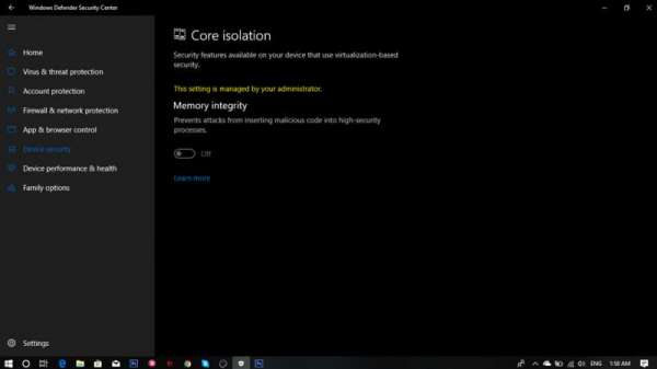 Ví dụ, hiện tại mình đang cài đặt Windows 10 April 2018 Update và Control isolation là tùy chọn bảo mật duy nhất dành cho thiết bị này.