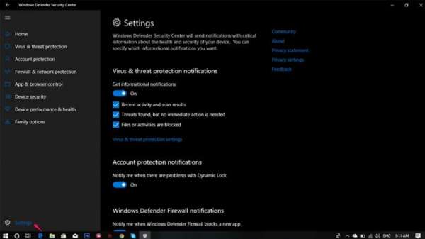 Mục Settings không có gì thay đổi, tuy nhiên đã đi kèm một số tùy chọn mới. Trong phần Windows Defender Antivirus notifications (Thông báo từ Windows Defender Antivirus) bạn sẽ tìm thấy ba nội dung sẽ hiển thị trong mục thông báo mà bạn có thể tắt: