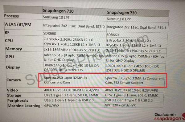 Nhưng để có thể hỗ trợ cùng lúc 3 camera, nó cần phải có hiệu năng xử lý tốt hơn. Và theo tờ thông số kỹ thuật này, Snapdragon 710 và 730 sẽ hỗ trợ đồng thời 3 camera lên đến 32 MP.