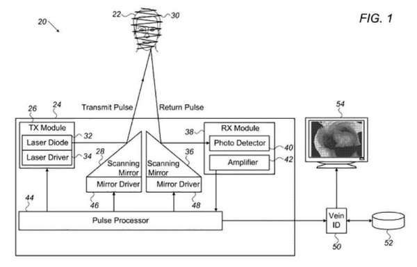 Hệ thống bao gồm một máy phát quang phát ra nhiều xung ánh sáng hồng ngoại hướng tới một vùng cơ thể của người dùng, chẳng hạn như bàn tay hoặc mặt. Ánh sáng hồng ngoại có thể đi qua da và phản chiếu các tĩnh mạch của người dùng, luồng ánh sáng trở về nhận được bởi một thiết bị chụp ảnh có khả năng chấp nhận ánh sáng hồng ngoại.