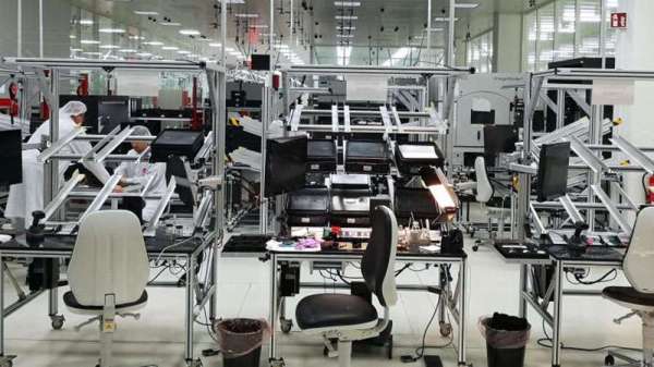 Phòng sạch bao gồm các bước sản xuất còn lại, là quy trình lắp ráp và kiểm tra để đạt năng suất tối đa khoảng 80 máy ảnh mỗi ngày.