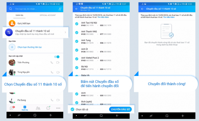 Hướng dẫn chuyển đổi danh bạ từ 11 số sang 10 số:
