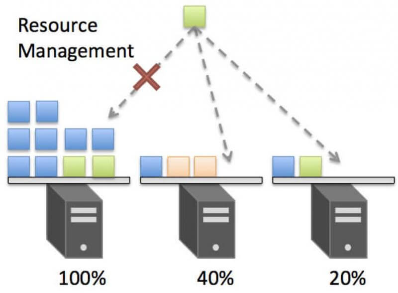 Trong các trường hợp không cụ thể khác, scheduling sẽ được thực hiện dựa trên tình trạng CPU và bộ nhớ trống, do đó người dùng không cần quản lý việc đặt container vào Docker host nào. Ngoài ra, nếu tài nguyên không đủ, k8s cũng sẽ tự động phân tỷ lệ các Kubernetes cluster.