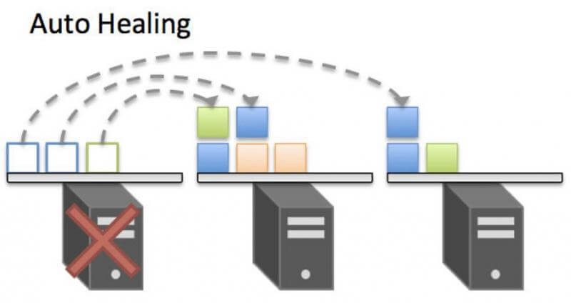 Với khả năng chịu lỗi cao, Kubernetes thực hiện giám sát container theo tiêu chuẩn. Trong trường hợp có sự cố bất ngờ, một container nào đó bị dừng thì sẽ thực hiện self-healing bằng cách khởi động lại container đó. Self-healing là một trong những khái niệm quan trọng trong k8s giúp tự động khôi phục các service khi node xảy ra lỗi, bị die, hoặc bị di chuyển đi...