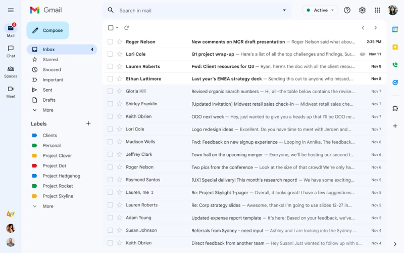 Ngày 9 tháng 11, Google đã công bố rằng họ sẽ biến giao diện của Gmail thành trải nghiệm tiêu chuẩn cho người dùng mới. Được biết công ty phát hành giao diện mới vào đầu năm nay, nhưng cho phép người dùng hoàn nguyên về chế độ xem ban đầu. Tuy nhiên bắt đầu từ tháng này, người dùng sẽ không còn tùy chọn quay lại giao diện cũ.