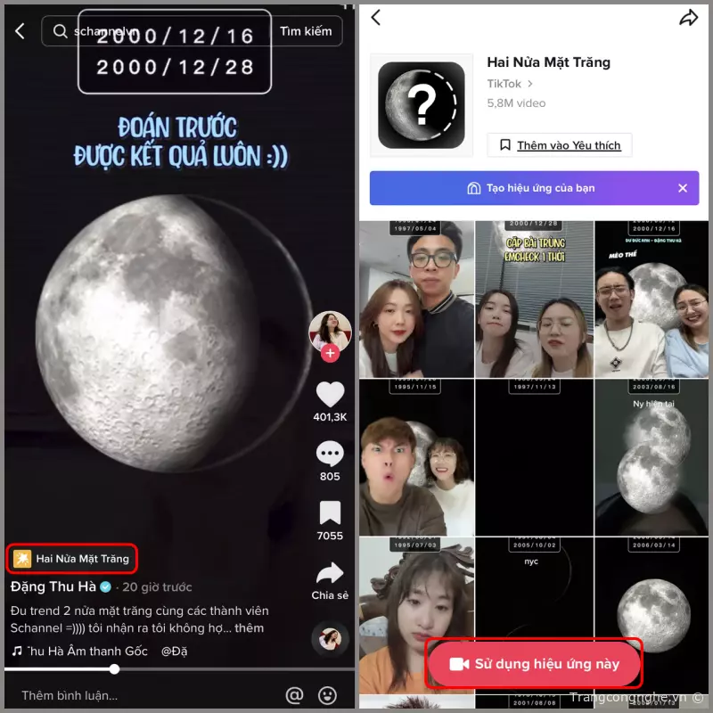 2. Hướng dẫn quay video tham gia trend Hai nửa mặt trăng trên TikTok