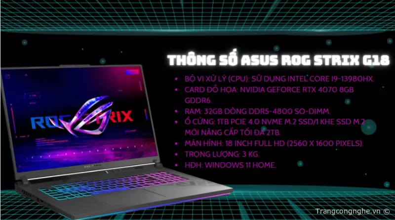Trên thị trường laptop, ASUS ROG Strix G18 và MacBook Pro M2 được coi là hai sự lựa chọn hàng đầu dành cho người dùng đòi hỏi hiệu năng mạnh mẽ và tính di động cao. Cả hai dòng sản phẩm này đều đến từ các nhà sản xuất nổi tiếng và đã được khẳng định về chất lượng và đẳng cấp. ASUS ROG Strix G18 hướng đến đối tượng game thủ và người dùng đam mê đồ họa, trong khi MacBook Pro M2 của Apple được thiết kế đặc biệt cho các chuyên gia sáng tạo và những người làm việc nặng về nội dung đa phương tiện. Vậy, hãy cùng trangcongnghe.vn tìm hiểu và so sánh ASUS ROG Strix G18 và MacBook Pro M2 từ đó giúp các bạn có sự lựa chọn phù hợp với nhu cầu và mong muốn của mình nhé!