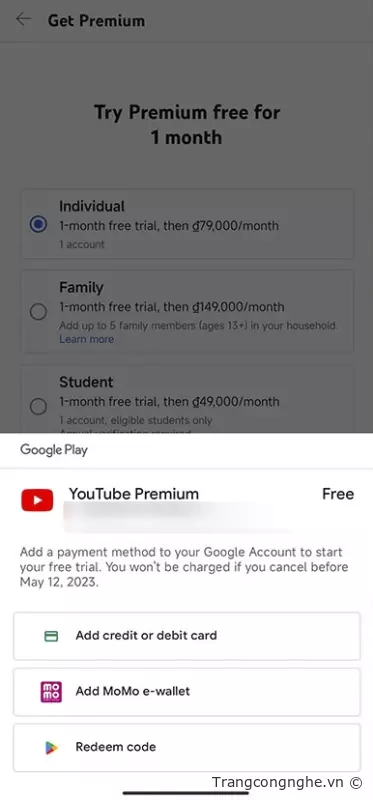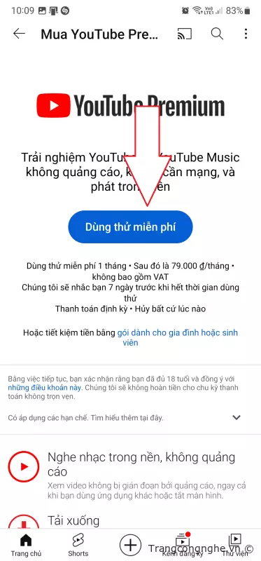 Bước 2: Tiếp đến, chọn Dùng thử miễn phí YouTube Premium.