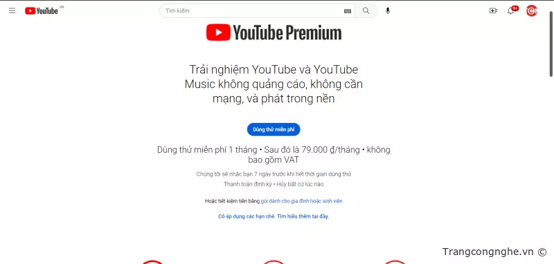 Tại Việt Nam, người dùng YouTube Premium sẽ được tặng 1 tháng dùng thử miễn phí, sau đó sẽ áp dụng phí dịch vụ hàng tháng như phía trên.
