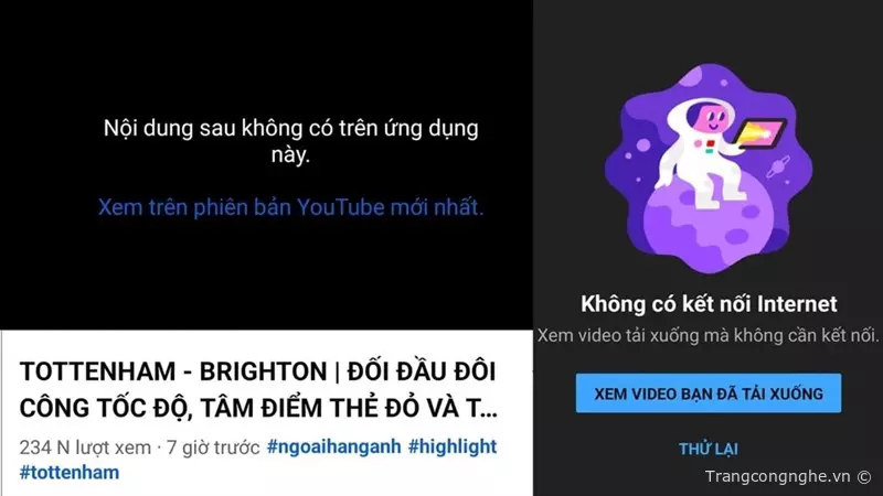Hiện tại, nhiều người dùng đã báo cáo rằng họ gặp vấn đề khi xem YouTube và phải đối mặt với 2 lỗi phổ biến nhất: 'Nội dung sau không có trên ứng dụng này, xem trên YouTube phiên bản mới nhất' và 'Không có kết nối internet'. Sự cố này đang gây đau đầu cho cộng đồng người dùng vì đây là lần đầu tiên YouTube áp đặt hành động quyết liệt đến với người dùng như vậy, sau khi ép ứng dụng Vanced - một ứng dụng cho phép dùng 'chùa' YouTube Premium, phải đóng cửa vào tháng 3/2022.