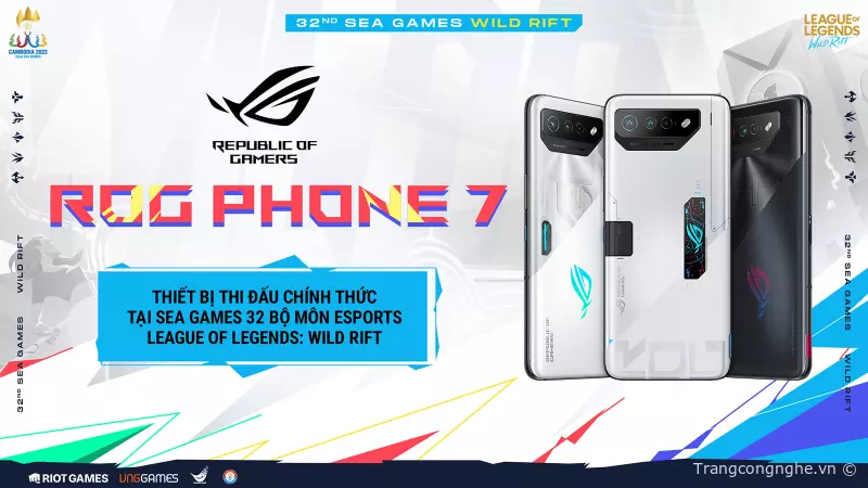ROG Phone 7 của ASUS Republic of Gamers (ROG) Việt Nam sẽ là thiết bị chính thức được sử dụng trong các trận đấu eSports LMHT:Tốc Chiến và PUBG Mobile tại SEA Games 32. Đây là kỳ đại hội thể thao lần thứ 3 liên tiếp đưa eSports vào danh sách nội dung thi đấu tranh tài. Trong số 6 bộ môn thi đấu, ROG Việt Nam sẽ là nhà tài trợ thiết bị cho ba bộ môn eSports LMHT:Tốc Chiến, PUBG Mobile và Valorant. ROG Phone 7 được trang bị cấu hình mạnh mẽ, độ nhạy cảm ứng cao, hệ thống tản nhiệt tốt, thiết kế thân thiện cho thi đấu các tựa game màn hình ngang và có chế độ eSport Mode đảm bảo công bằng tuyệt đối khi thi đấu.