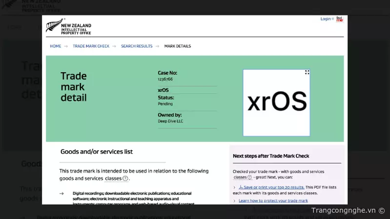 Parker Ortolani một người dùng đã đưa thông tin rằng Apple dường như đã đăng ký thành công cho logo chữ “xrOS” ở New Zealand. Điều này chứng minh rằng Apple đã gián tiếp tiết lộ tên hệ điều hành mới dành cho chiếc kính AR/VR sắp ra mắt vào giữa năm 2023 của mình.