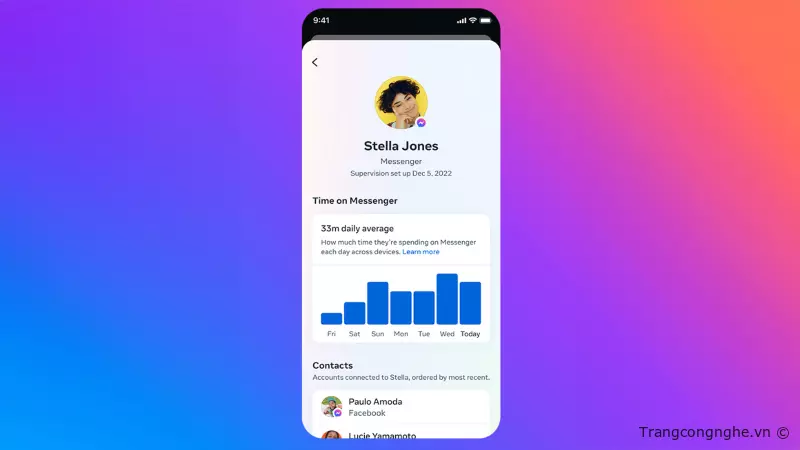 Ngoài ra, Meta còn cho phụ huynh khả năng xem các quyền riêng tư và cài đặt an toàn của con, cũng như thay đổi danh sách liên lạc trong Messenger và theo dõi thời gian sử dụng. Hơn nữa, phụ huynh cũng sẽ nhận được thông báo khi con cái báo cáo một tài khoản nào đó và có thể xem và điều chỉnh cài đặt như ai có thể nhắn tin cho con (chỉ bạn bè, bạn của bạn bè hoặc không có ai). Nếu trẻ em thay đổi các cài đặt này, Meta sẽ thông báo cho phụ huynh.