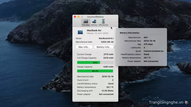 - Trên máy Mac, MacBook hoặc iMac, hãy tải xuống ứng dụng Coconut Battery từ trang web chính thức.