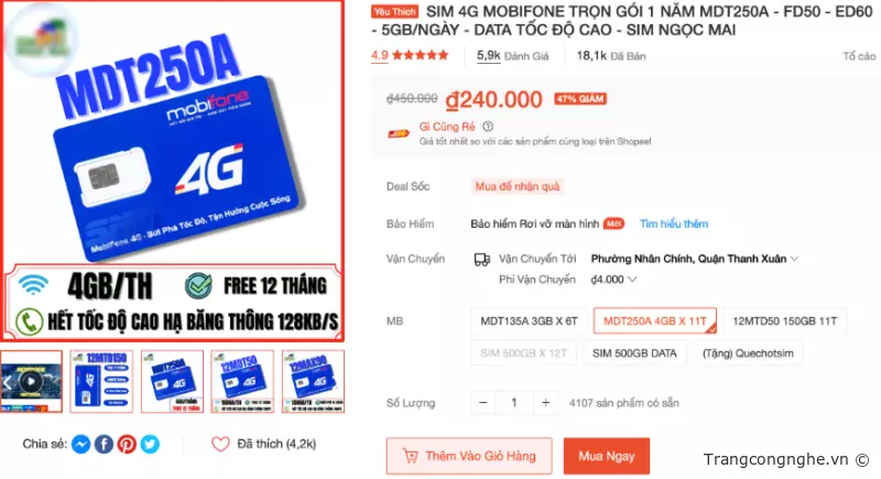 Đáng chú ý, vẫn có nhiều gói cước 4G giá siêu rẻ được bày bán công khai trên các sàn thương mại điện tử. Ví dụ, một gian hàng đang bán SIM 4G Mobifone MDT250A với gói trọn gói 1 năm với giá chỉ 240.000 đồng. Khi chia nhỏ ra để sử dụng trong 12 tháng, người dùng chỉ mất khoảng 20.000 đồng/tháng. Con số này chắc chắn không đáp ứng được yêu cầu về giá 70.000 đồng/tháng mà Bộ Thông tin và Truyền thông đã đề ra trước đó.