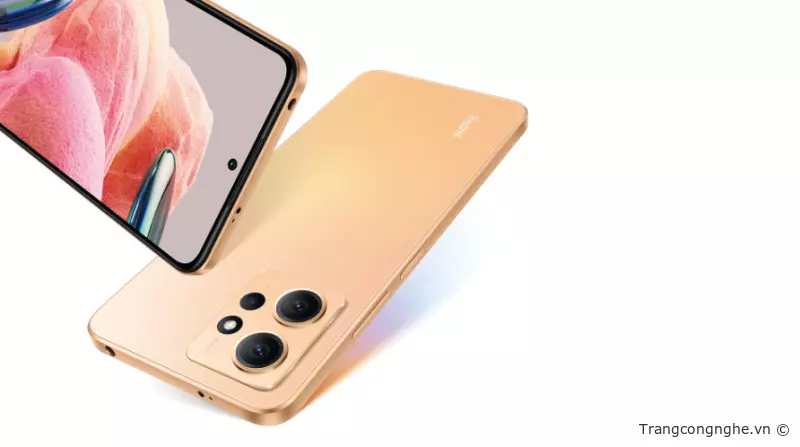 Redmi Note 12 phiên bản mới với thiết kế kim loại nguyên khối kết hợp cùng sắc Vàng mang đến một diện mạo vô cùng bóng bẩy và sang trọng. Dưới ánh nắng, hiệu ứng phản quang tạo nên hình ảnh những tia nắng sớm mai nhảy múa trên bề mặt điện thoại, tôn lên vẻ đẹp nổi bật. Sự khéo léo trong thiết kế và độ hoàn thiện cao giúp sắc Vàng trên Redmi Note 12 trở nên trong trẻo và sang trọng, xuất hiện liền lạc từ mặt lưng đến khung viền và từng đường cong bo quanh bốn cạnh. Sắc Vàng cũng thêm phần tôn vinh cho thiết kế siêu mỏng của máy, chỉ 7,9mm, và cụm camera ấn tượng.