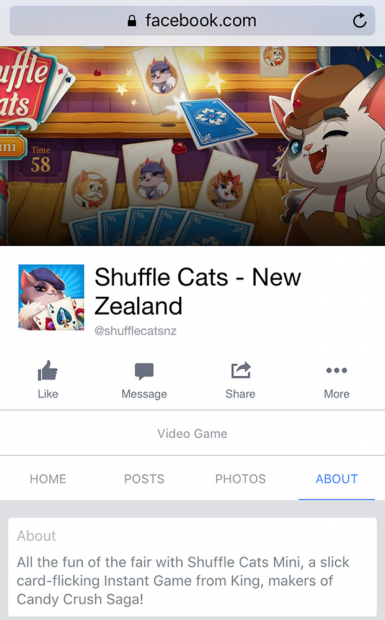 Nguồn tin cho biết, Facebook đã bí mật thử nghiệm Instant Games, tuy nhiên, tên studio game hợp tác với Facebook để làm điều này thì chưa được tiết lộ. Trong khi đó, nguồn tin của trang Techcrunch thì nói rằng, nhà phát triển King.com, tác giả của trò Candy Crush nổi tiếng, đã lập một trang (Page) Facebook mới cho tựa game Shuffle Cats Mini và nói rằng nó thuộc nền tảng “Instant Game' mà chúng ta đang nhắc tới. Page này hiện đã cho phép người dùng ở một số khu vực như New Zealand chơi thử. Shuffle Cats Mini có vẻ như sẽ load một phần trên web, để lộ 1 tựa game mà ở đó bạn có thể ném các con bài vào mục tiêu. Nhưng bạn không thể chia sẻ điểm số thành tích của mình để cạnh tranh với bạn bè - một hạn chế giống với game bóng rổ và bóng đá của chính Facebook.