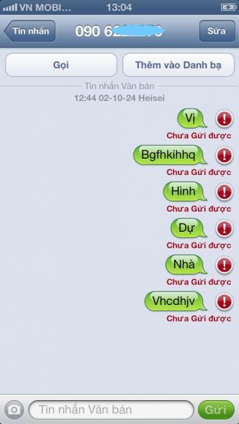 Triệu chứng: Không gửi được tin nhắn thường (SMS) hoặc tin nhắn đa phương tiện (MMS) cho các thiết bị di động không phải của Apple. Tin nhắn bị dội ngay trở lại với thông báo “Chưa gửi được” (Not Delivered).