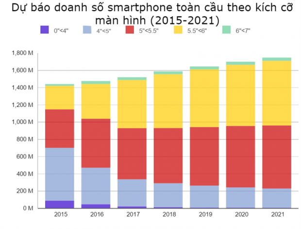 Từ bảng số liệu trên cho thấy, tỷ lệ tăng trưởng kép (Compounded Annual Growth rate - CAGR) của thị trường di động trong giai đoạn 2016-2021 là 3.4%. Năm 2017, số điện thoại xuất xưởng ước đạt 1,517 tỷ chiếc và đến năm 2021 sẽ là 1,744.6 tỷ chiếc.