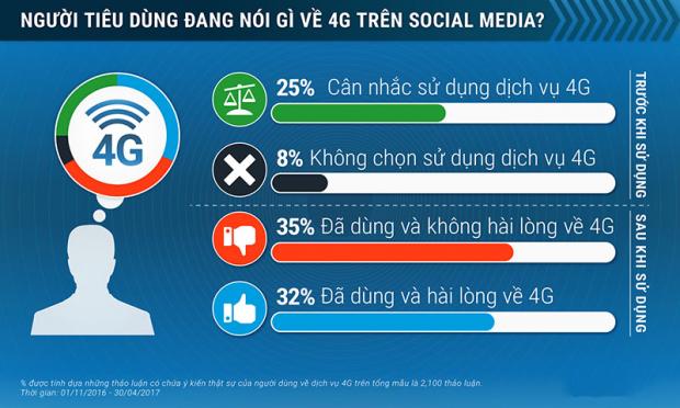 Chỉ có 32% người được khảo sát sau khi dùng đã cảm thấy hài lòng về mạng 4G (Ảnh: Buzzmetrics)